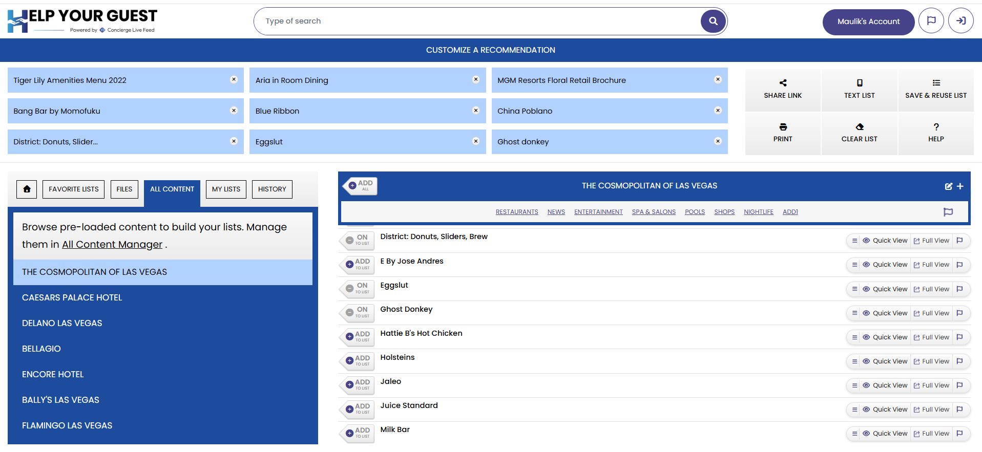 Concierge Live Feed (CLF) facilitates industry communication to concierge in major hotels. CLF has a large presence in the Las Vegas and Los Angeles markets and will be streamlining their platform to all the major markets in Fall 2020.